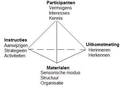 Jenkin’s basale idee van contextualisme wordt gepresenteerd in het tetrahedrale model van geheugenexperimenten (zie figuur 1). Dit model omvat vier dimensies: