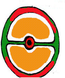 Figuur 1 Rood=dermatoom, oranje boven= dorsale spiermassa,oranje onder= ventrale spiermassa.).